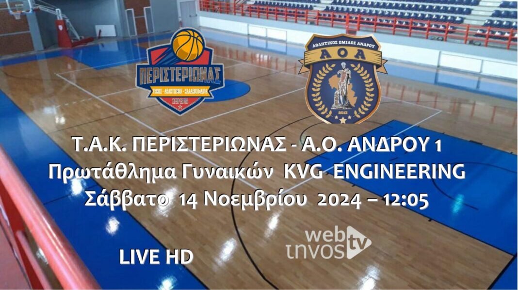 Παρακολουθήστε το Σάββατο 14 Δεκεμβρίου 2024 στις 12:05 τον αγώνα μεταξύ των ομάδων ΤΑΚ Περιστεριώνας – ΑΟ Άνδρου για το Πρωτάθλημα Γυναικών KVG ENGINEERING