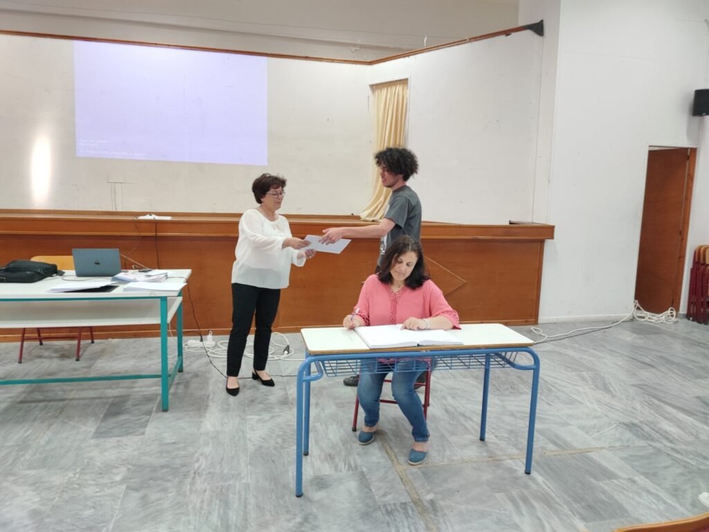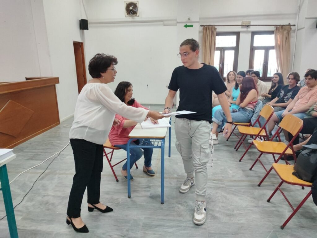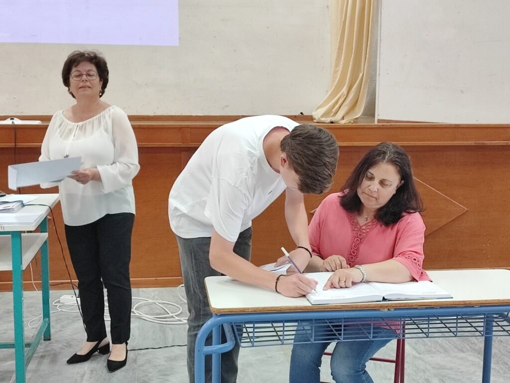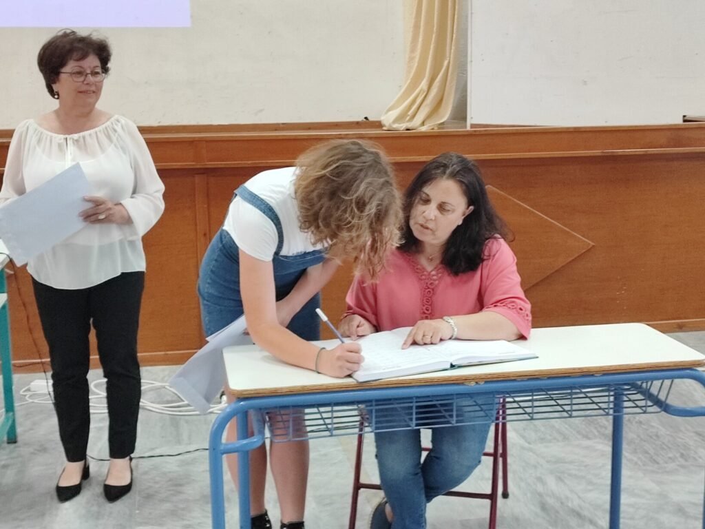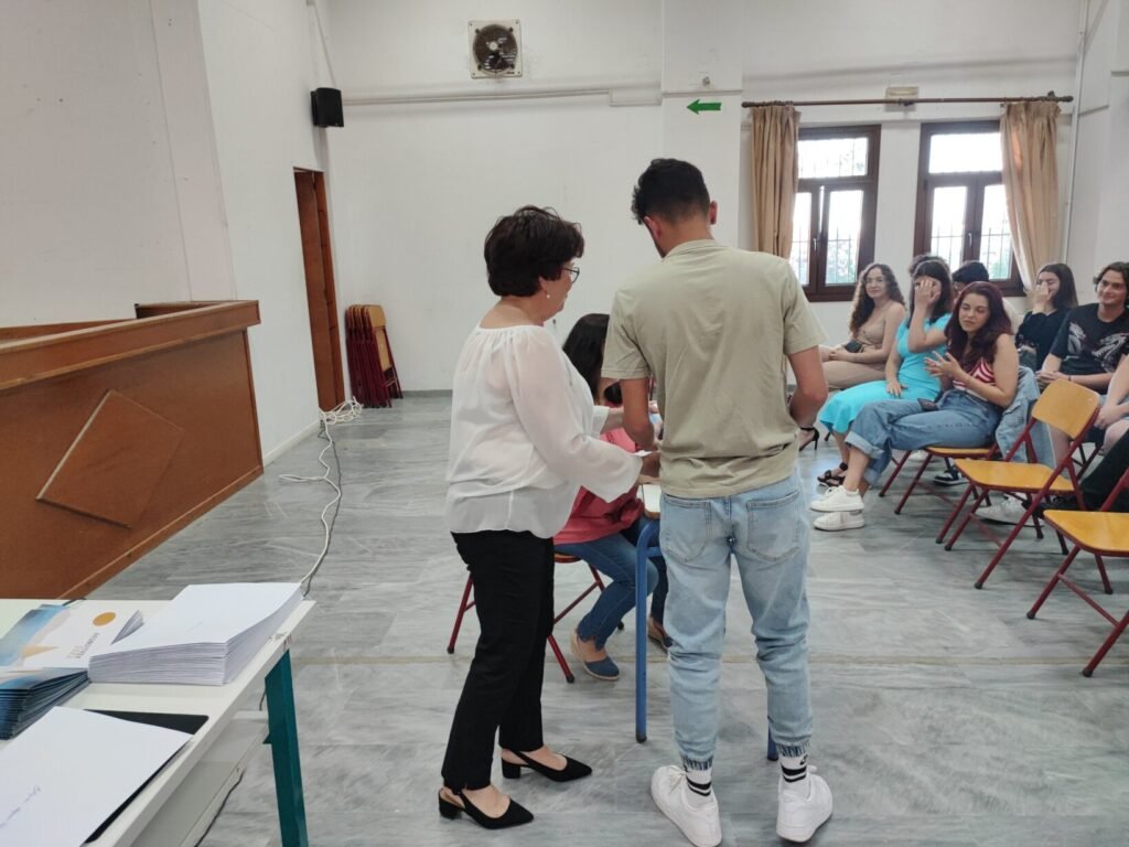 Σε μία λιτή εκδήλωση αποχαιρετήσαμε την Τρίτη 13 Ιουνίου στην Αίθουσα Πολλαπλών Χρήσεων τους μαθητές και μαθήτριες της Γ΄ τάξης του Σχολείου μας. Οι τελειόφοιτοι, όχι πια μαθήτριες και μαθητές, αλλά κυρίες και κύριοι με τη φρεσκάδα της ηλικίας τους, τη χαρά στα μάτια τους, την ανακούφιση για το τέλος των εξετάσεων, την προσμονή των καλών αποτελεσμάτων ήρθαν για να παραλάβουν τον τίτλο σπουδών που αποδεικνύει την ολοκλήρωση της φοίτησής τους στο Λύκειο. Ευχόμαστε στο μεγάλο και συναρπαστικό ταξίδι της ζωής να τους συντροφεύει … «Τέχνη – Τύχη – Τόλμη»
