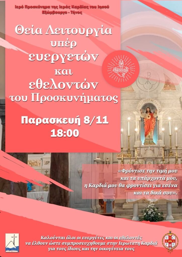 Για τον λόγο αυτό θα τελεστεί Θεία Λειτουργία στον Ναό της Ιεράς Καρδίας την Παρασκευή 8 Νοεμβρίου στις 6 το απόγευμα, η οποία θα προσφερθεί υπέρ των ευεργετών, των εθελοντών και των οικογενειών τους.