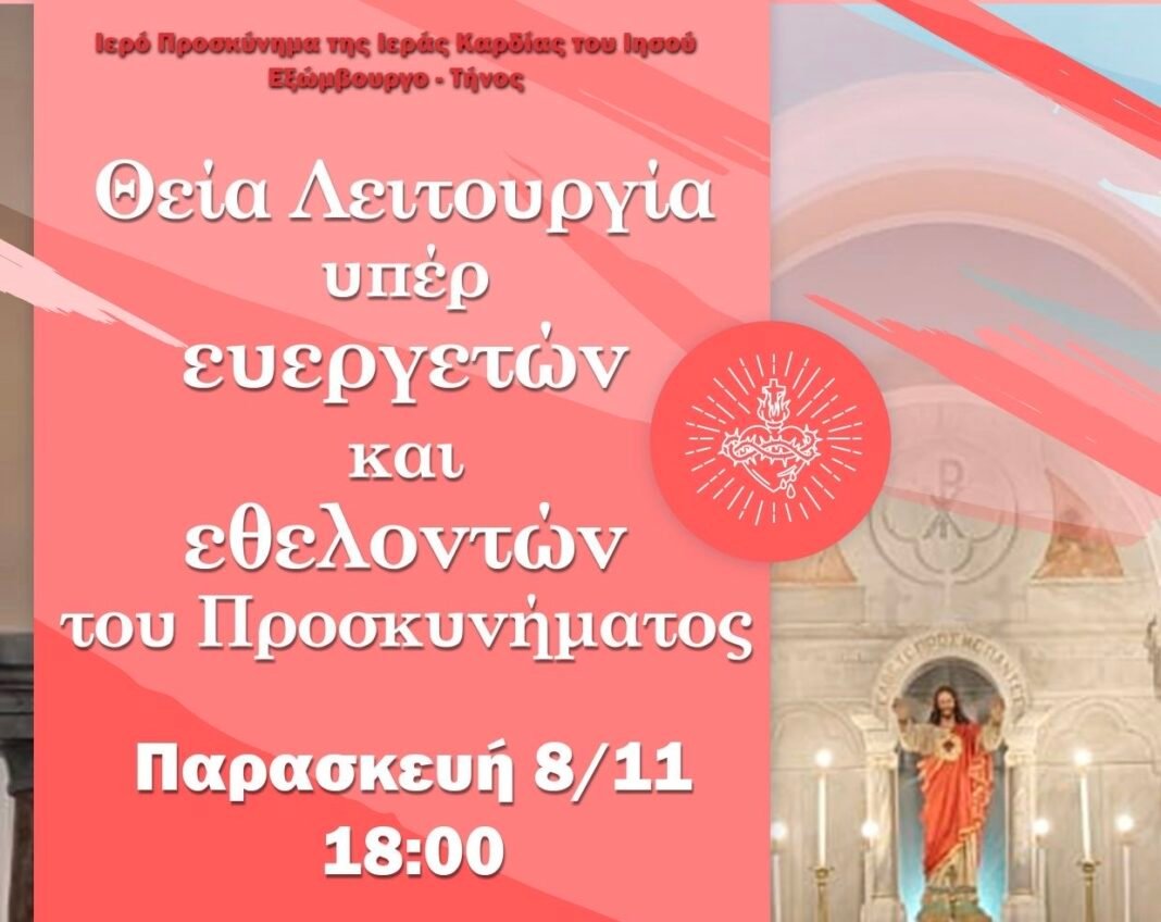 Για τον λόγο αυτό θα τελεστεί Θεία Λειτουργία στον Ναό της Ιεράς Καρδίας την Παρασκευή 8 Νοεμβρίου στις 6 το απόγευμα, η οποία θα προσφερθεί υπέρ των ευεργετών, των εθελοντών και των οικογενειών τους.