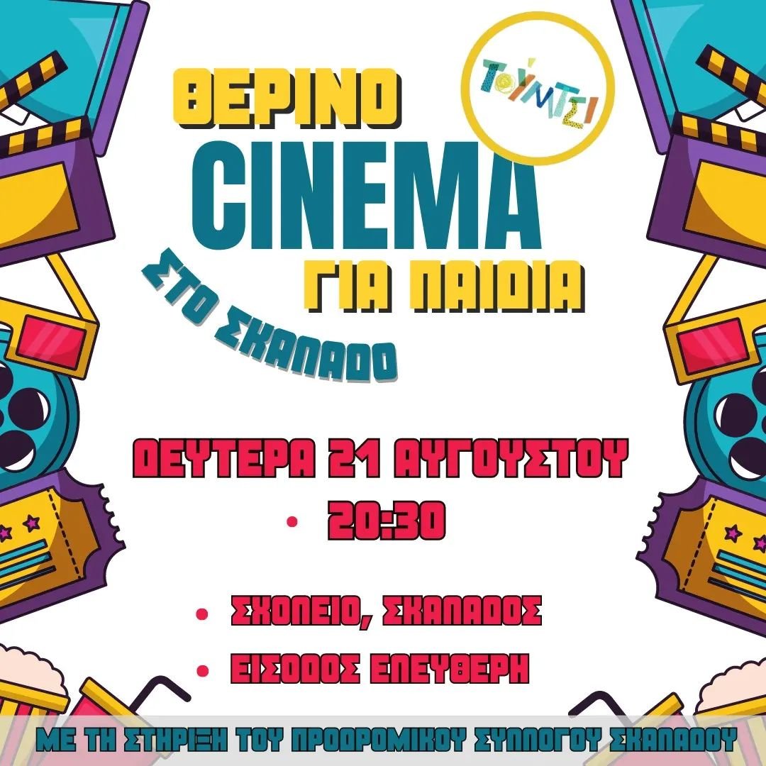 Τη Δευτέρα 21 Αυγούστου είναι βραδιά σινεμά για όλα τα τουμτσόπαιδα της Τήνου. Σας περιμένουμε στις 20:30 στο σχολείο, στο Σκαλάδο να δούμε ταινία όλοι μαζί παρέα!