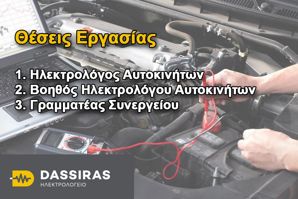 Το ΔΑΣΥΡΑΣ – Ηλεκτρολογείο Αυτοκινήτων, στο πλαίσιο ενίσχυσης και στελέχωσης του συνεργείου του, αναζητά προσωπικό για τις παρακάτω θέσεις: