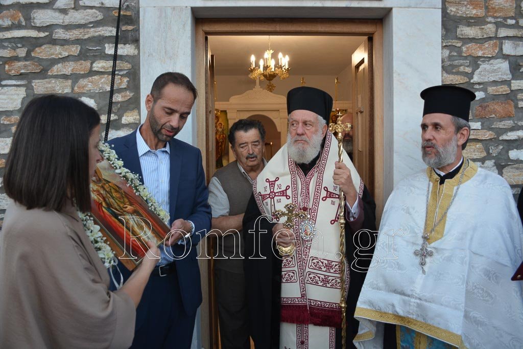Στην ομιλία του ο Σεβασμιώτατος, συνεχάρη τους αδελφούς και τις οικογένειες τους για αυτήν την φιλευσεβή σκέψη να ανοικοδομήσουν ένα Ιερό Παρεκκλήσιο και όπως είπε χαρακτηριστικά, «…κάθε φορά που ανοικοδομείται ένα Ιερό Παρεκκλήσιο, θεμελιώνεται μαζί του η Αγία Τράπεζα, έρχεται ο Ουρανός στην γή και η γή ανεβαίνει στον Ουρανό, καθώς απ’ αυτής θυσιάζεται ο Κύριος, ο οποίος με αυτή την θυσία Tου, επανέφερε τον Άνθρωπο στην αιωνιότητα και στον Παράδεισο».