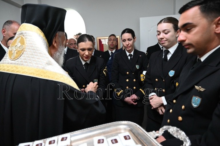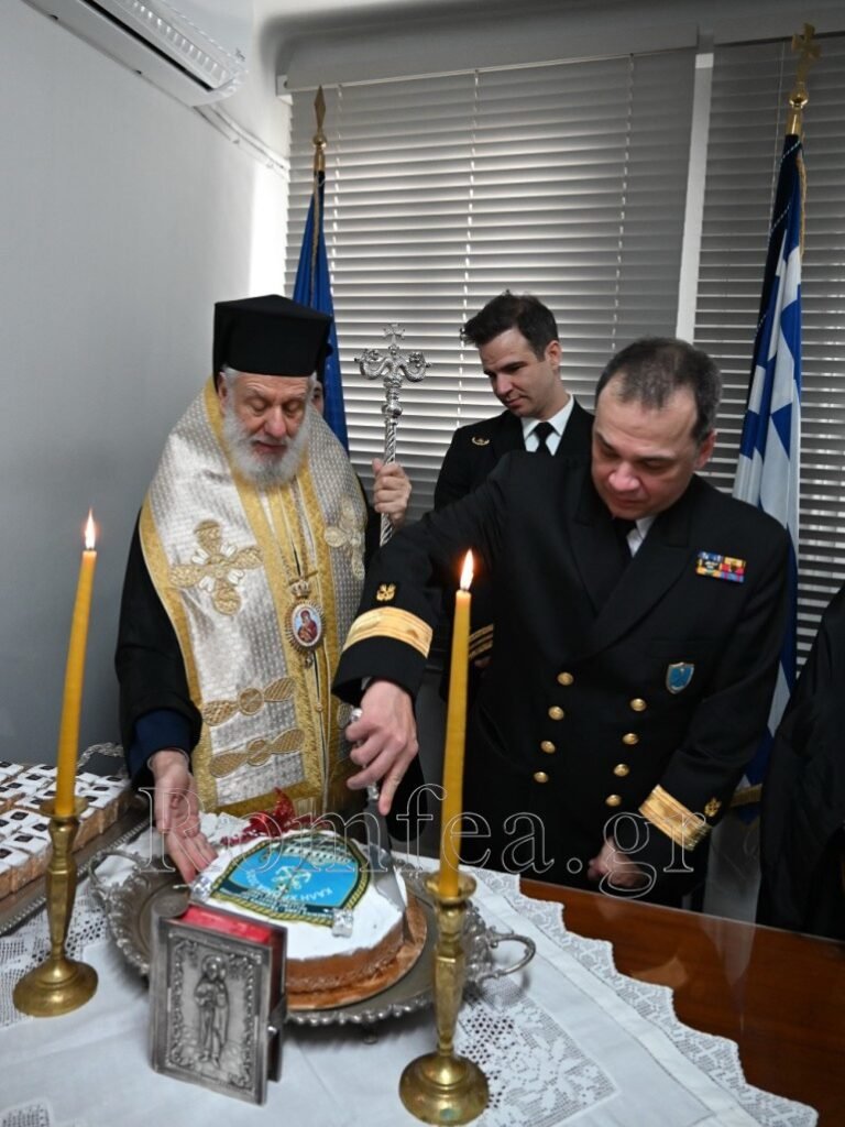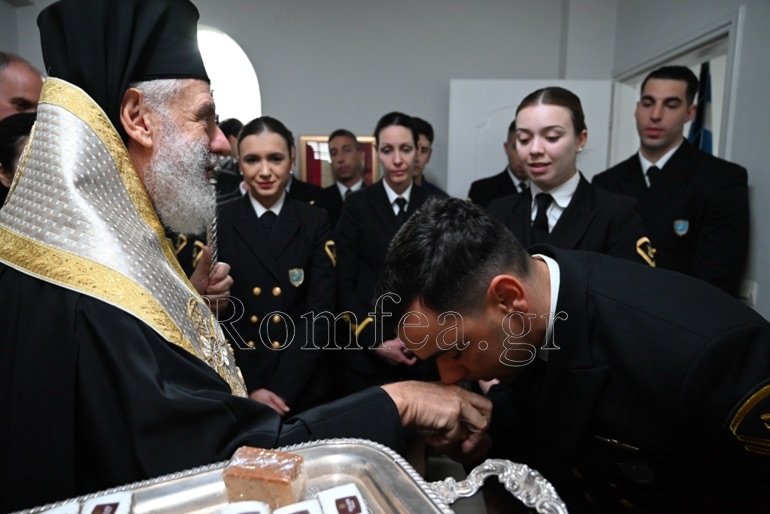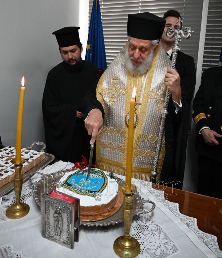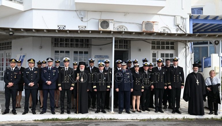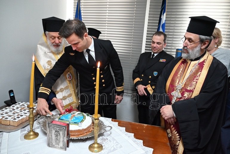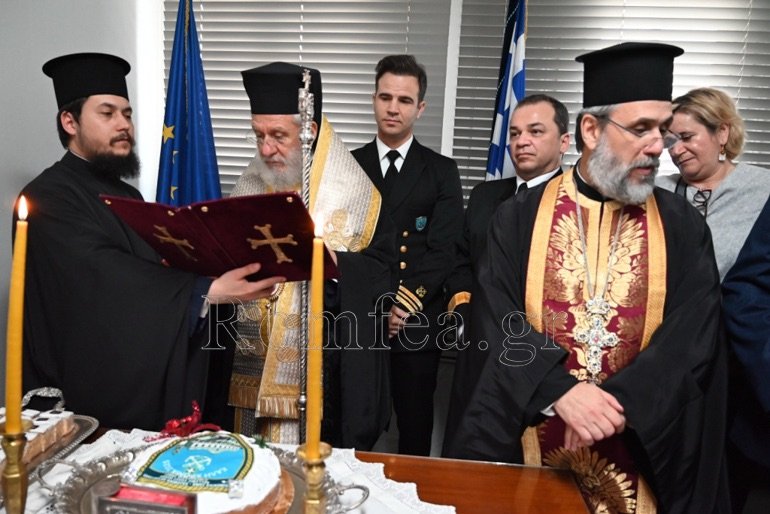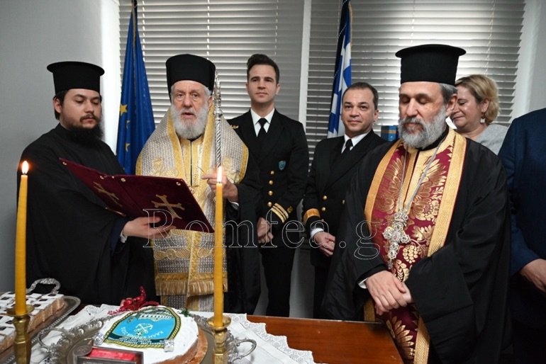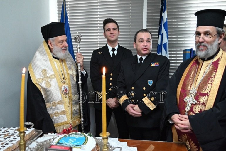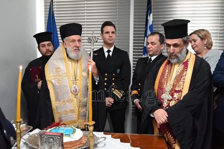 Εν συνεχεία, συνεχάρη τον Λιμενάρχη και ευχαρίστησε όλους και τον Διοικητή για την προσφορά τους και την άριστη συνεργασία που έχουν με την Ιερά Μητρόπολη.