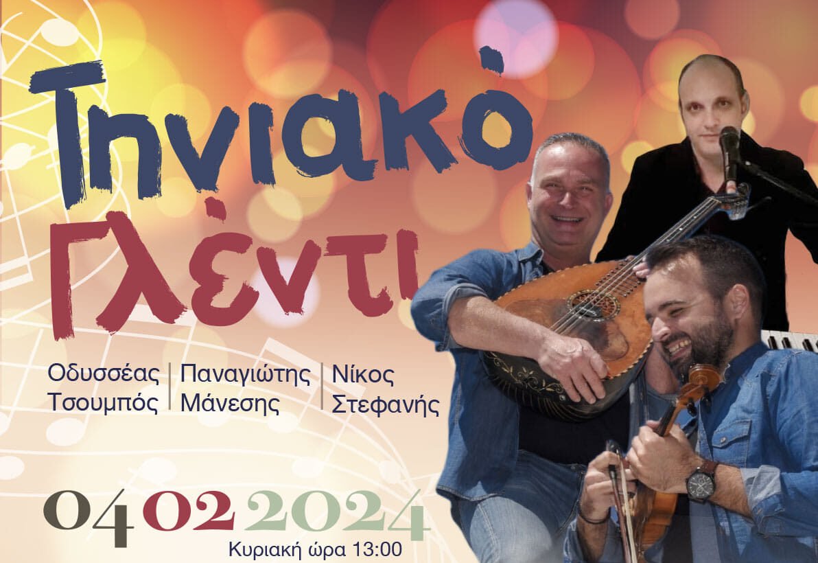 Τηνιακό Γλέντι με τους Οδυσσέα Τσουμπό, Παναγιώτη Μάνεση και Νίκο Στεφανή στις 04/02/2024 και ώρα 13:00 στον πολυχώρο Ελίζα (παράδρομος Λ. Βουλιαγμένης 511, Ηλιούπολη)