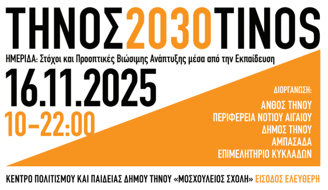 Στις 16 Νοεμβρίου ξεκινά ένα δύσκολο, απαιτητικό και όμορφο ταξίδι. Ο στόχος του: μια πραγματικά βιώσιμη Τήνος για τους κατοίκους της, ένα σπάνιο κόσμημα για τους επισκέπτες της, ένας φωτεινός πυρήνας, ένας φάρος παιδείας και πολιτισμού. «Με τους τρόπους τους παλιούς», με τη γνώση και την εμπειρία του σήμερα και με καινοτόμα εργαλεία για ένα πραγματικά καλύτερο αύριο.