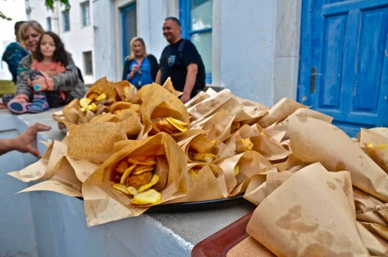 Οι εκδηλώσεις των “παιδιών” των Tinos Food Paths συνεχίζονται και εμείς τις παρακολουθούμε με αμείωτο ενδιαφέρον. Την Παρασκευή το απόγευμα το πρόγραμμα συμπεριελάμβανε το δρώμενο: “Το Τinosfoofpaths αναζητά τις ρίζες τους. Τα τηγανιτζίδικα. Λαογράφοι μιλούν, γυναίκες τηγανίζουν και παιδιά κερνάνε… μεζέ με ιστορία. (Στον Δημοτικό παιδικό σταθμό)”