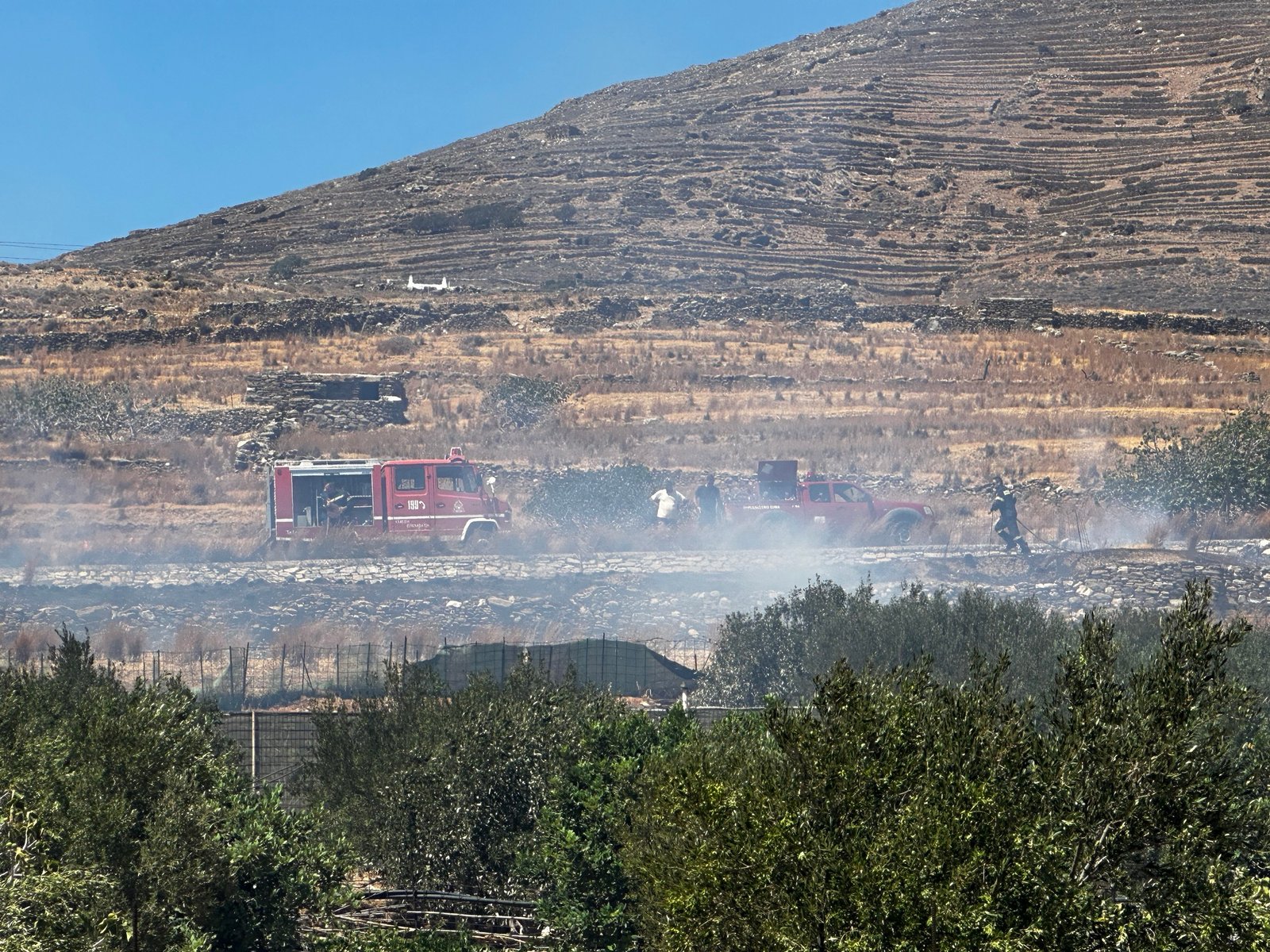 Το Πυροσβεστικό Κλιμάκιο Τήνου αντέδρασε άμεσα και με αποτελεσματικότητα, κατασβήνοντας τη φωτιά.