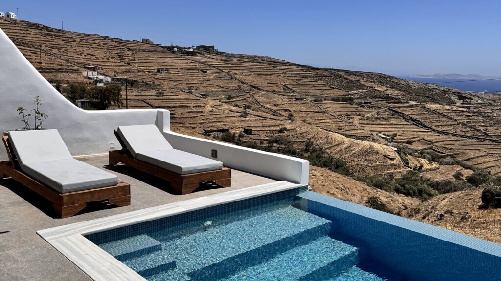 Ο καιρός είναι πλέον φθινοπωρινός στο νησί της Τήνου, ωστόσο οι εκσκαφείς δεν σταματούν να δουλεύουν. Νέες κατοικίες και ξενοδοχειακές μονάδες συνεχίζουν να χτίζονται στο νησί των Κυκλάδων, το οποίο βλέπει τις υποδομές του να φτάνουν στα όριά τους.