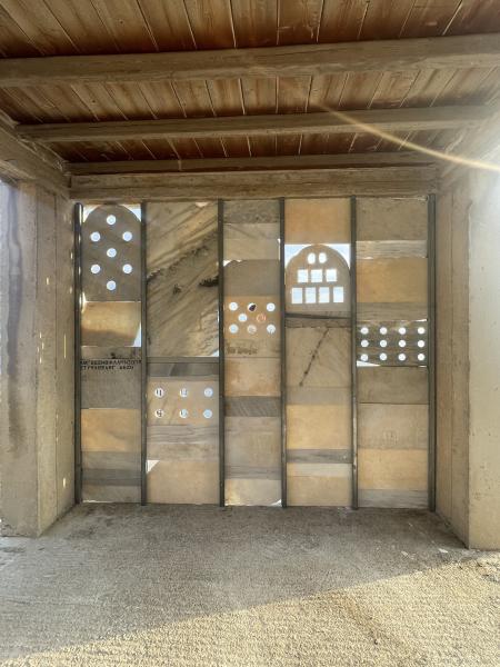 Το έργο τοίχος / toichos είναι εμπνευσμένο από τις παραδοσιακές τέχνες και κυρίως την ξερολιθιά, μια τεχνική που έχει επιβιώσει ανά τους αιώνες και έχει δώσει στην Τήνο το χαρακτηρισμό “χειροποίητο”νησί. Με τον όρο «τέχνη της ξερολιθιάς» εννοούμε την κατασκευή κτισμάτων με λίθους χωρίς κανένα συνδετικό υλικό (εν ξηρώ). Οι ξερολιθικές κατασκευές, είναι άλλοτε έντονα ορατές, όπως εκτεταμένα εντυπωσιακά σύνολα ταρατσωτών καλλιεργειών, και άλλοτε διακριτικές και ταπεινές, όπως τα κτίσματα γεωργοκτηνοτροφικής χρήσης. Ωστόσο, είναι πάντα καλαίσθητες και φιλικές προς το περιβάλλον. Η ξερολιθιά συνδέεται με έθιμα και πρακτικές που σχετίζονται με την παραδοσιακή οργάνωση του χώρου, καθώς και με τον ιδιαίτερο χαρακτήρα του τόπου.Οι ξερολιθικές κατασκευές συνδέονται άμεσα με τη γνώση των πετρωμάτων και των φυσικών υλικών, και γενικά με τη γνώση του περιβάλλοντος χώρου. Οι κατασκευες αυτές έχουν πολλά ονόματα, σκάλες στην Τήνο, αιμασιές στην Άνδρο, σέτια και ποδόμες στη Λέσβο, αρμάκες στην Κεφαλονιά, δέσες στην Ήπειρο, αστάδια ή βασταοί και τάβλες στη Νίσυρο, δαμάκια και λούροι στους Λειψούς, βασταοί και λουριά στη Β. Κάρπαθο και στην Κάσο (από το υπό έκδοση βιβλίο της Θεοδώρας Πετανίδου Αναβαθμίδες του Αιγαίου)..