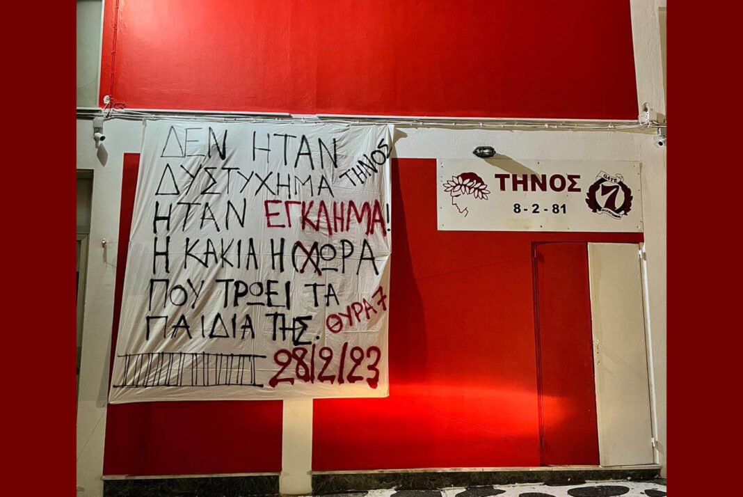 Το δικό τους πανό έβαλαν οι φίλοι του Ολυμπιακού Τήνου στον σύνδεσμο για να διαμαρτυρηθούν για το έγκλημα στα Τέμπη.