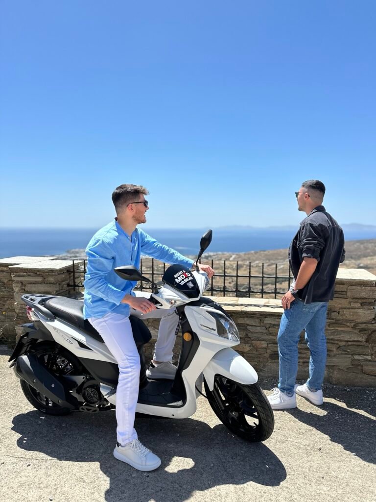 Σήμερα, μαζί με τους δυο γιους του, Γιάννη και Ευγένιο, έχουμε καταφέρει να κερδίσουμε την εμπιστοσύνη των συντοπιτών μας και όχι μόνο. Εκμεταλλευόμενοι την εμπειρία μας στους δυο τροχούς (είμαστε επίσημοι αντιπρόσωποι YAMAHA, SYM, DAYTONA κ.α.), την κοινωνικότητα μας, την αγάπη μας στο να προσφέρουμε τις καλύτερες δυνατές εμπειρίες στους πελάτες μας καθώς και έπειτα από την ολοκλήρωση των σπουδών μας, αποφασίσαμε να επεκταθούμε στην ενοικίαση μοτοσυκλετών και μοτοποδηλάτων.