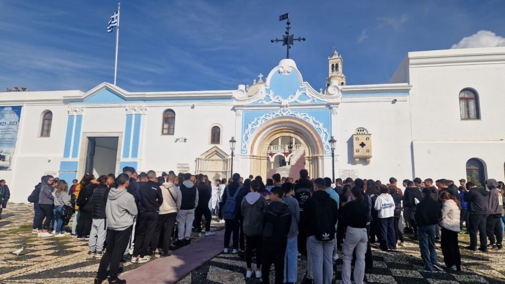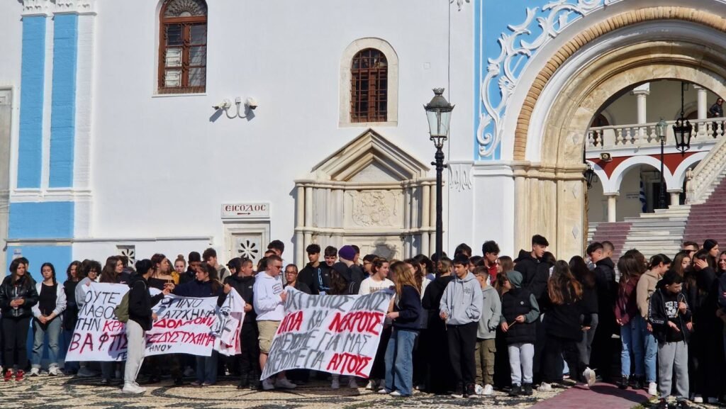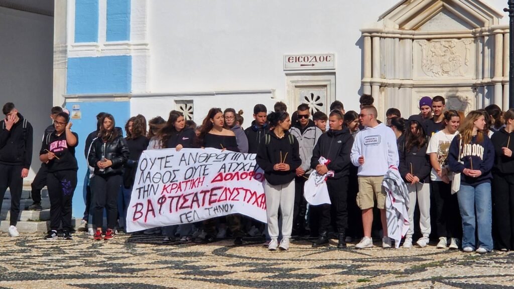 Λίγο πρίν τις 10.00 το πρωί στην αυλή έξω από το Πανελλήνιο Ιερό Ίδρυμα Ευαγγελιστρίας Τήνου, μαθητές αλλά και κάτοικοι του νησιού συγκεντρώθηκαν για διαμαρτυρία, απαιτώντας η δολοφονία να μην κουκουλωθεί.