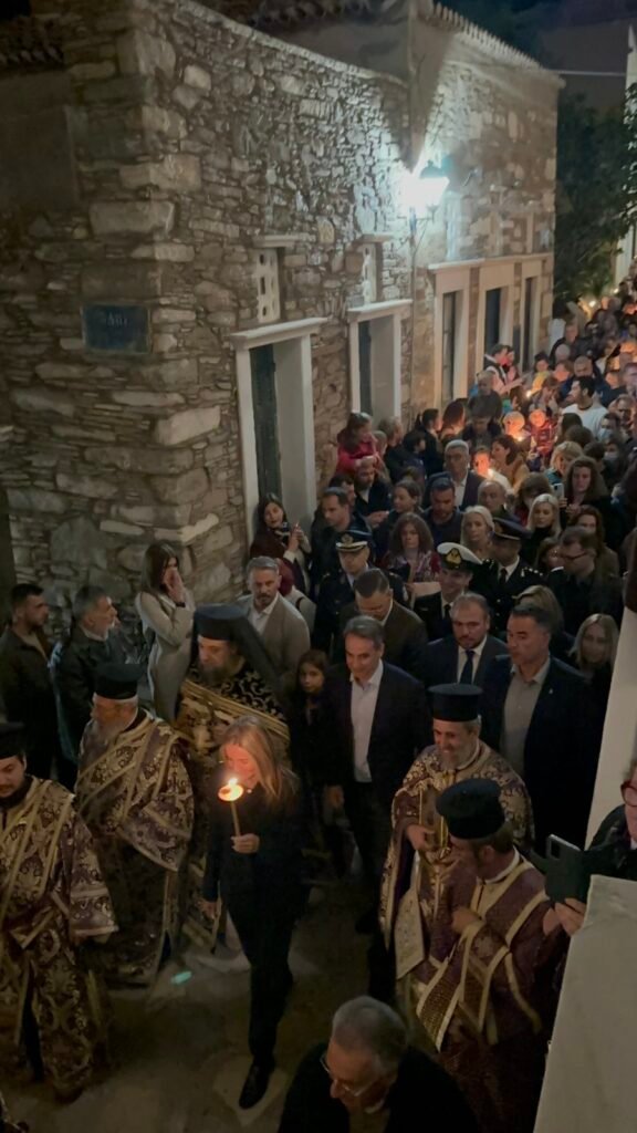 Την Περιφορά παρακολούθησε και ο Πρωθηπουργός Κυριάκος Μητσοτάκης, συνοδευόμενος από τη σύζυγό του Μαρέβα Γκραμπόφσκι.