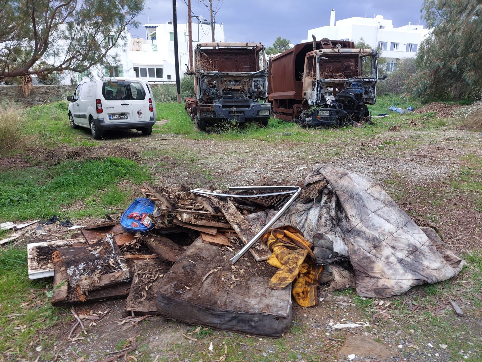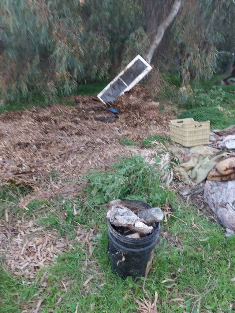 Συνεχιζουμε τον καθαρισμό του Λαγκαδιου της Αγιας Παρασκευής , στη Χώρα Τήνου. Πέμπτη πρωί, πριν τη δουλειά, ασχολήθηκαμε με τον Ευκάλυπτο πίσω από τα φορτηγά. Προφανώς εκεί ήταν μια υπαίθρια κατασκήνωση νομάδων , που τα φυτά κάλυψαν μετά την αναχώρηση των ανθρώπων. Πολλές κουβέρτες, στρώματα, πλαστικά μιας χρήσης, παράθυρα και άλλα πολλά !!! πολύ καλά κρυμμένα.