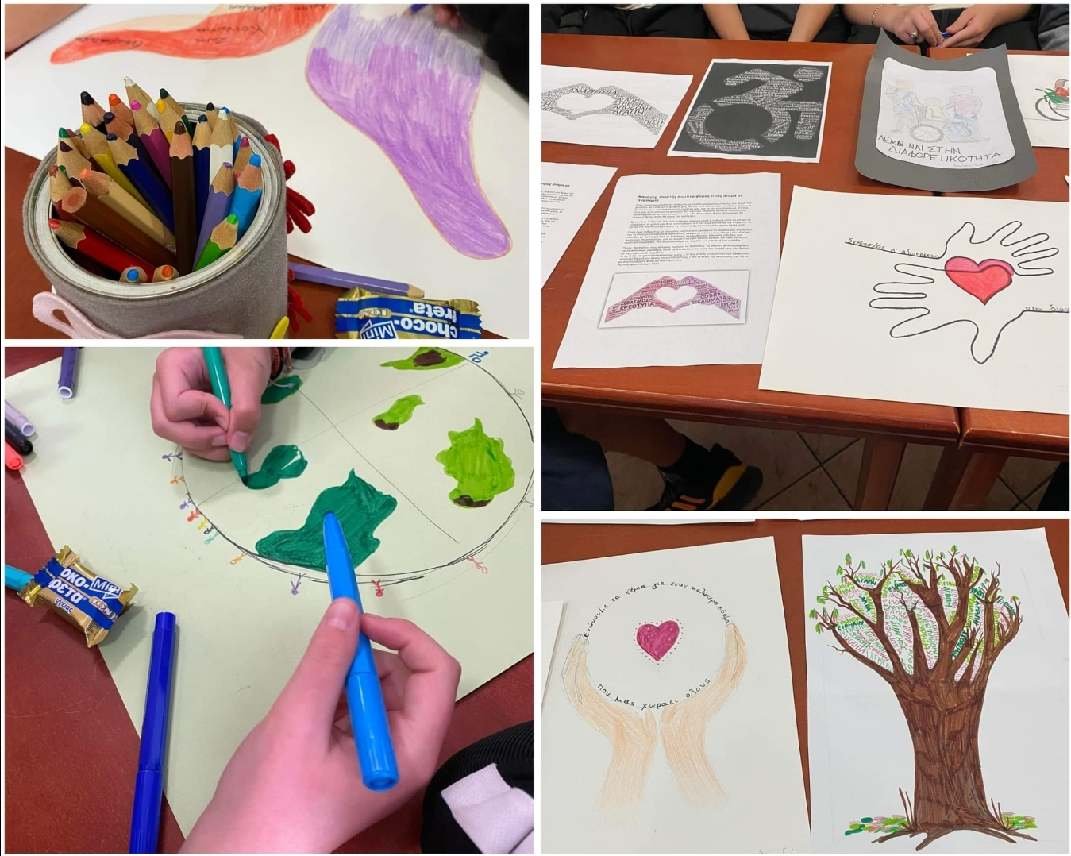 Μετά το σύντομο χαιρετισμό της προέδρου και την αναφορά της στους στόχους και στις δράσεις του σωματείου, οι μαθητές με την ενθάρρυνση των καθηγητριών τους τραγούδησαν, ζωγράφισαν μαζί μας και μοιράστηκαν εμπειρίες με την κ. Άννα Μαρία Φωσκόλου, μέλος του σωματείου μας με οπτική αναπηρία και εντεταλμένη σύμβουλος του Δημάρχου Τήνου για θέματα αναπηρίας.