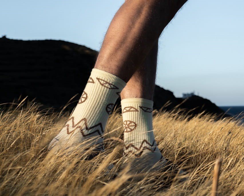 Δημιουργήσαμε μια κάλτσα για καλό σκοπό που αποτυπώνει πάνω της ένα κομμάτι της Τήνου. Τα μοτίβα των περιστεριώνων και το χρώμα του μυρωδάτου ευλογημένου χώματος δίνουν το έναυσμα για εξερεύνηση της πραγματικής ταυτότητας του νησιού!