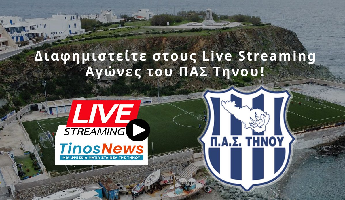 Σε συνεργασία με τον ΠΑΣ Τήνου, όλα τα τμήματα του ποδοσφαίρου πλέον, στα εντός έδρας παιχνίδια, θα προβάλλονται ζωντανά με Live Streaming τόσο απο το tinosnews.gr όσο και από το κανάλι μας στο Youtube σε υψηλή ανάλυση.