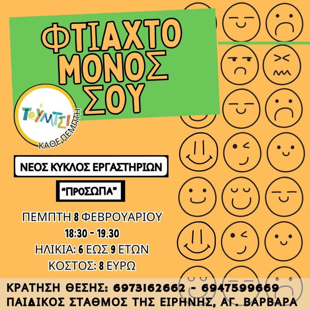 Την Πέμπτη 8 Φεβρουαρίου, ξεκινά νέος κύκλος συναντήσεων του εργαστηρίου “ΦΤΙΑΧΤΟ ΜΟΝΟΣ ΣΟΥ”. Με αφορμή ένα παράξενο ταξίδι, θα συναντήσουμε “πρόσωπα” που θα αποτελέσουν κομμάτια του παιχνιδιού που θα φτιάξουμε.