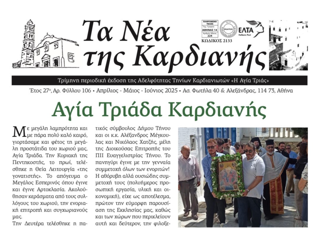 Τρίμηνη περιοδική Έκδοση της Αδελφότητας Τηνίων Καρδιανιωτών “Η Αγία Τριάς”