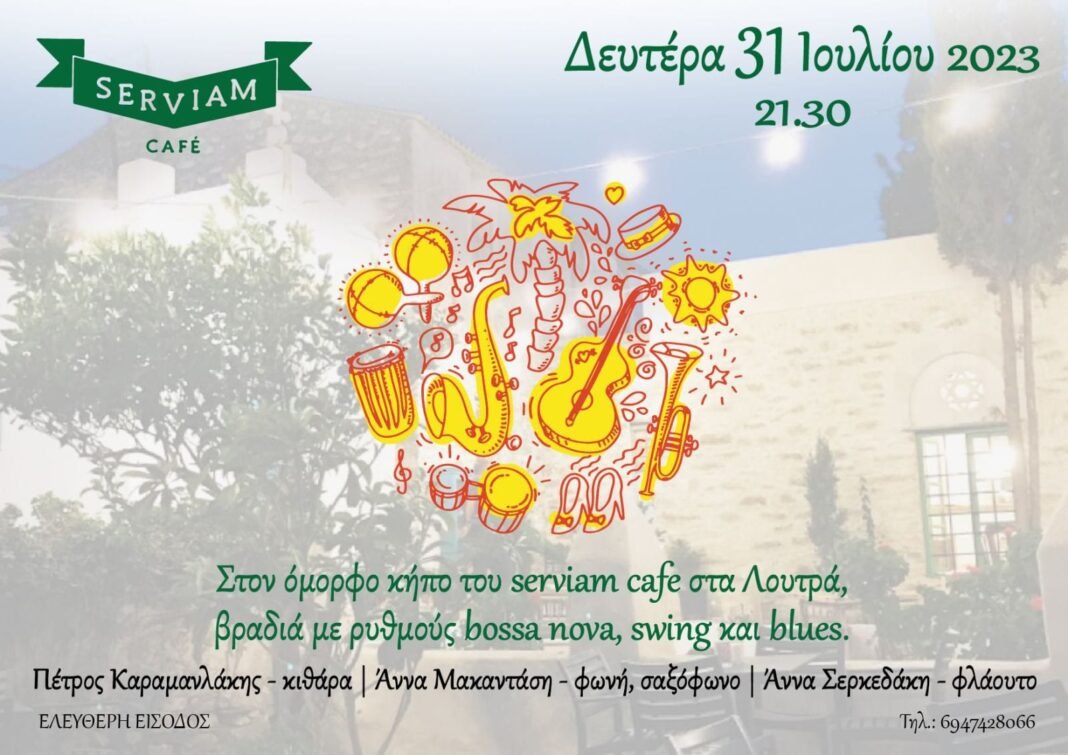 Στον όμορφο κήπο του seviam cafe στα Λουτρά, βραδιά με ρυθμούς bossa nova, swing και blues.