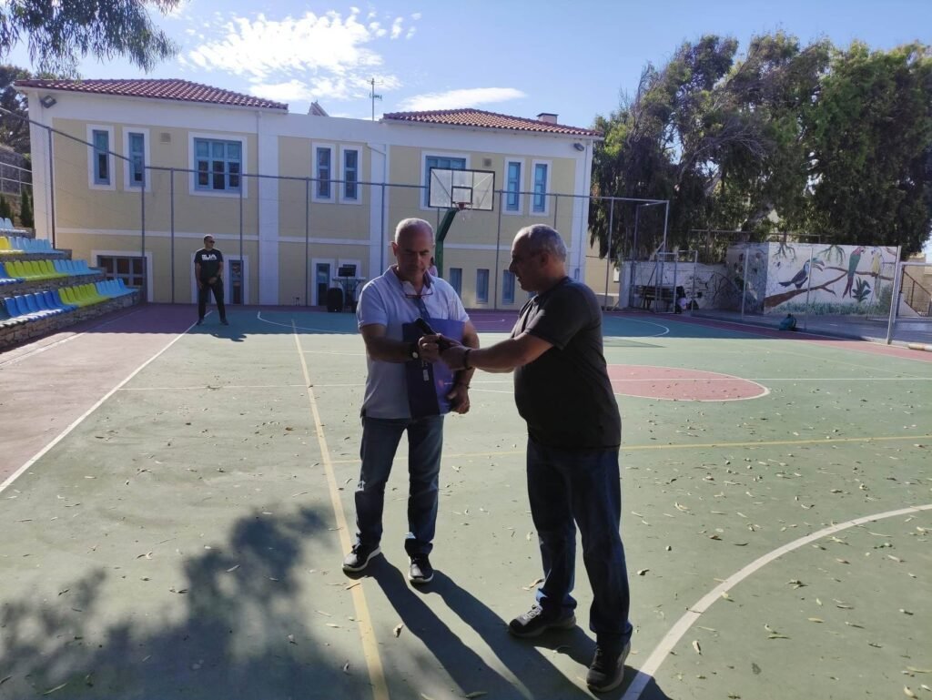 Με την εκπρόσωπο της Κοιν.Σ.Επ. Καλλονή – Κελλιά Τήνου Λήδα Νταφούλη παραδώσαμε από ένα τάμπλετ στους διευθυντές των σχολείων μας.