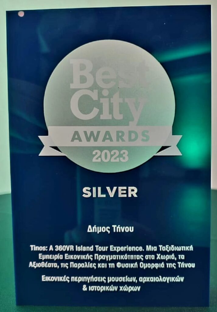 Βραβείο για το νησί μας και την ταξιδιωτική εμπειρία εικονικής πραγματικότητας στα χωριά, τα αξιοθέατα και τις παραλίες της Τήνου στα «Best City Awards 2023», τον κορυφαίο θεσμό βραβείων στο χώρο της τοπικής αυτοδιοίκησης.