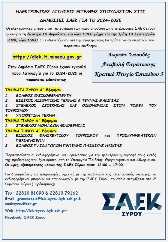 Email: grammateia@iek-syrou.kyk.sch.gr & saeksyrou@sch.gr