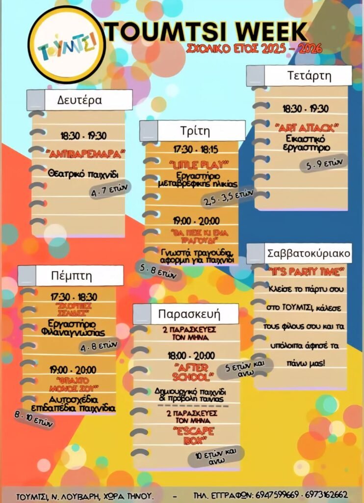 📢ΕΚΤΑΚΤΗ ΑΝΑΚΟΙΝΩΣΗ! Τα εργαστήρια Τούμτσι ξεκινούν την Δευτέρα 6 Οκτωβρίου 2025 και σας περιμένουμε όλους!