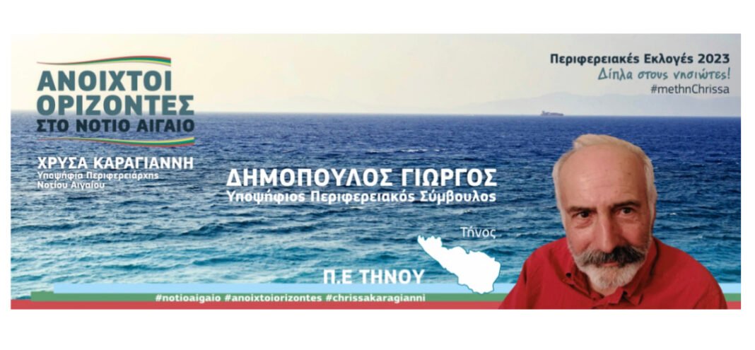 Στον δύσκολο αλλά ωραίο αγώνα για την υλοποίηση των παραπάνω στόχων, καλούμε τις συμπατριώτισσες και τους συμπατριώτες μας που δέχονται τις αρχές μας να πλαισιώσουν και να στηρίξουν δυναμικά τον συνδυασμό της Χρύσας Καραγιάννη «ΑΝΟΙΧΤΟΙ ΟΡΙΖΟΝΤΕΣ στο Νότιο Αιγαίο» ώστε να αλλάξουμε ριζικά την πορεία των νησιών μας σ’ αυτή τη κρίσιμη στιγμή. Βιογραφικό του υποψηφίου Περιφερειακού Συμβούλου μας τοπικά: