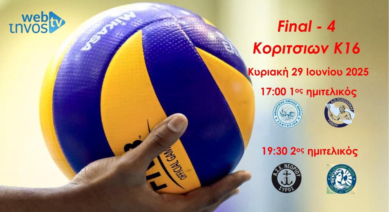 Η καρδιά του Κυκλαδίτικου βόλεϊ χτυπά αυτήν την Κυριακή 29 Ιουνίου στο Κλειστό Γυμναστήριο “Τήνια 1895 – Νικόλαος Βιδάλης”, όπου φιλοξενείται το Final-4 του πρωταθλήματος Κ16 της Τοπικής Ένωσης Βόλεϊ Κυκλάδων.